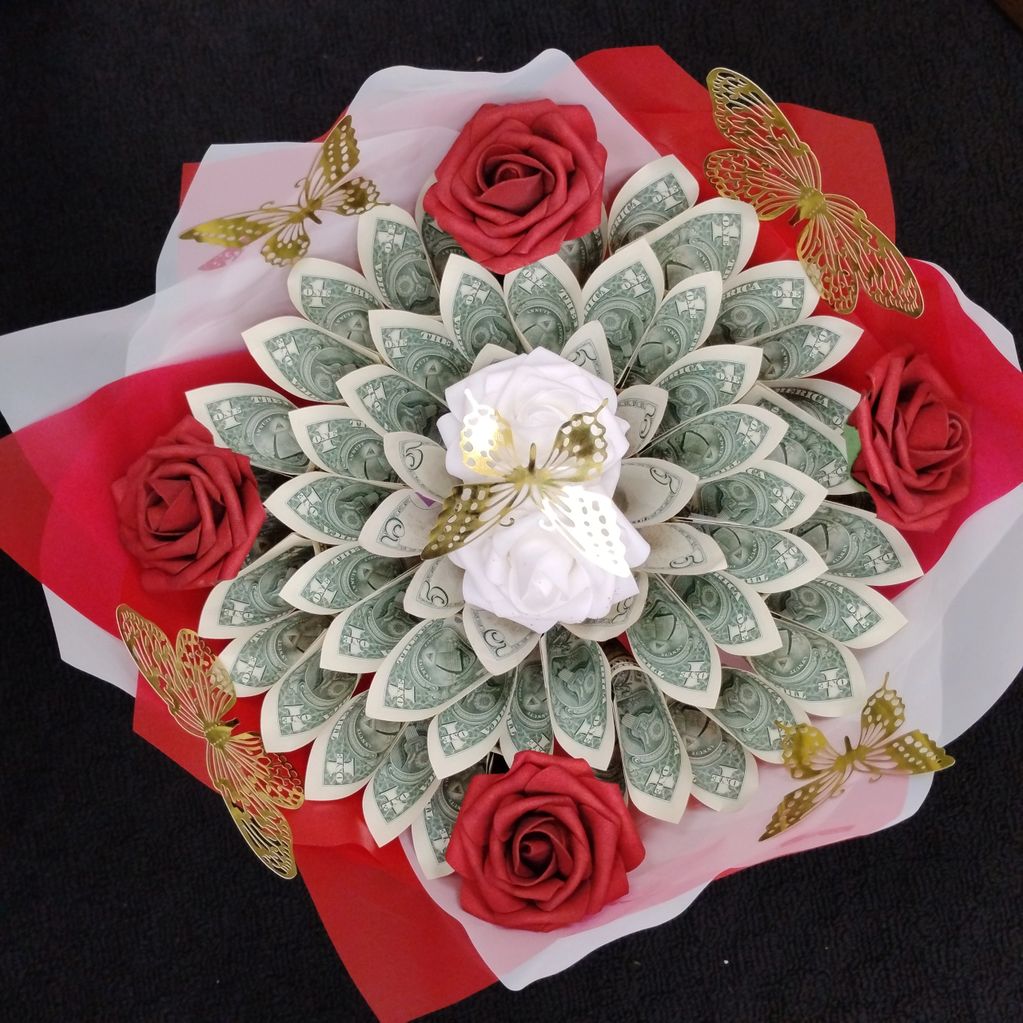 Red&white $50 Bouquet (1 & 5 doll) Total cost $128.00+tx