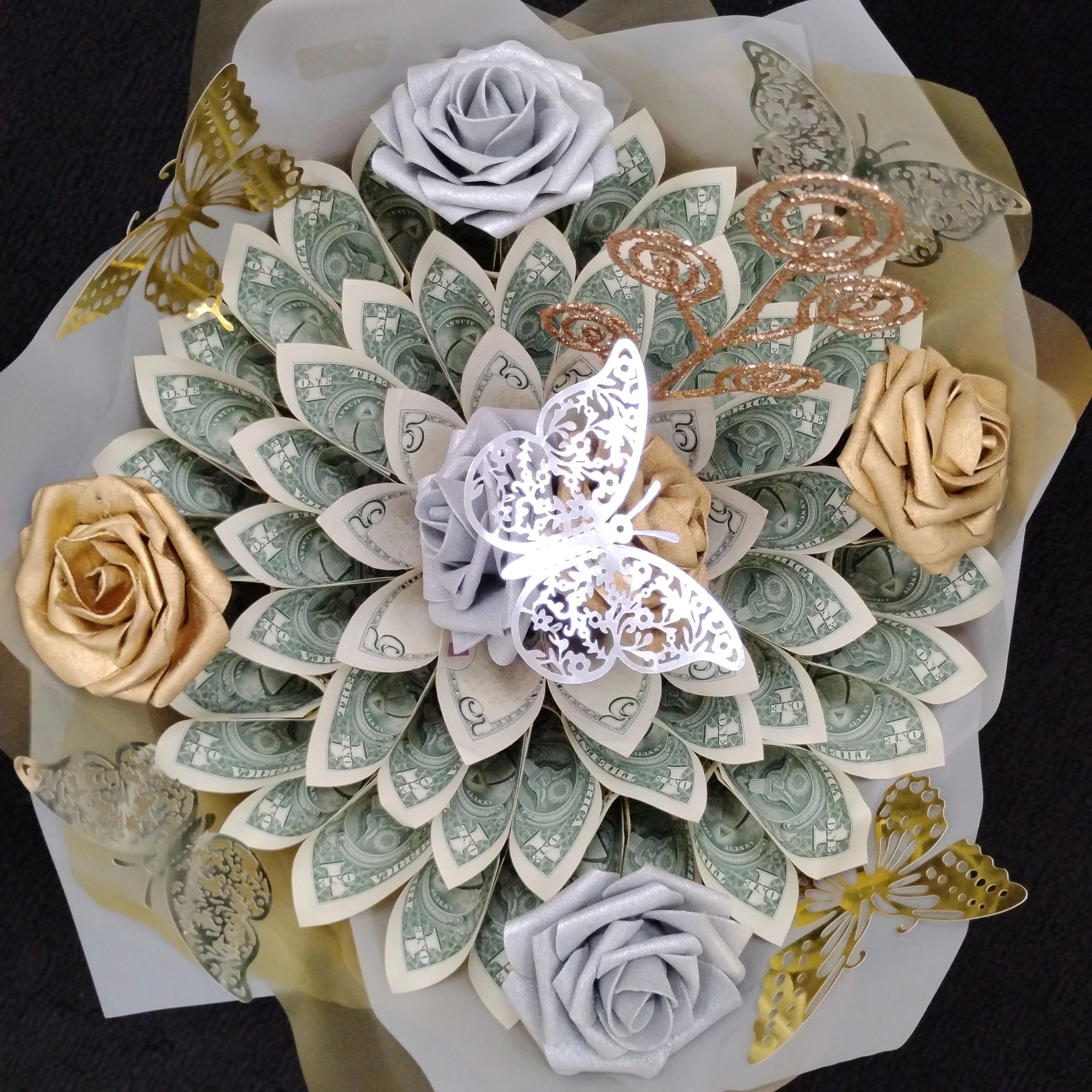 $50 dollar gold & Silver 1&5 dollar Bouquet cost $128.00+tx